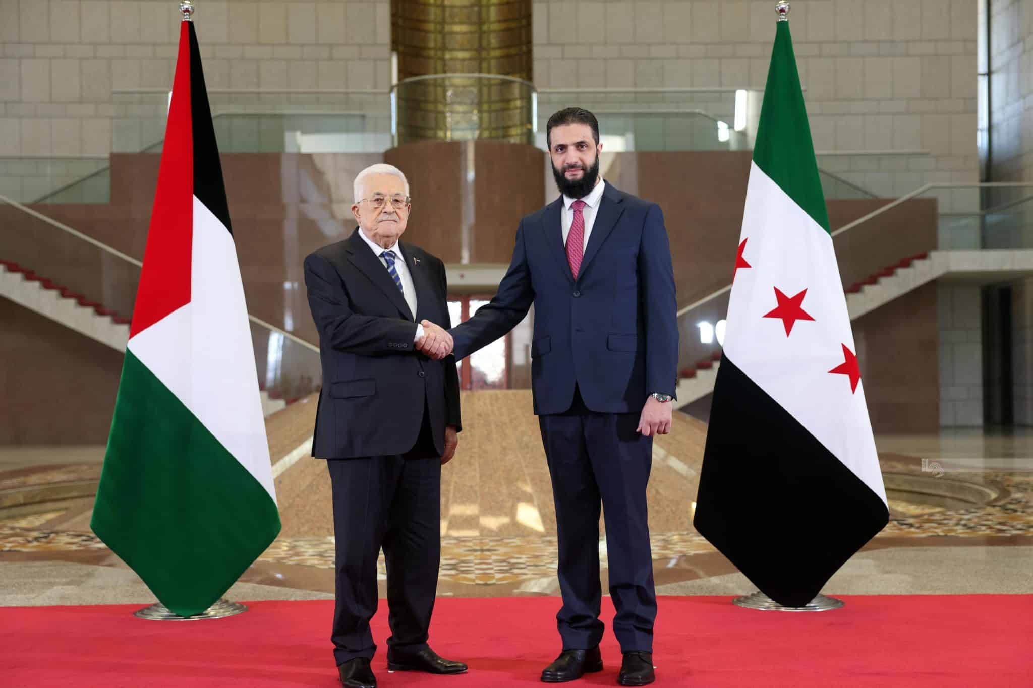 اجتمع رئيس دولة فلسطين محمود عباس، اليوم الجمعة، مع الرئيس السوري أحمد الشرع، في قصر الشعب بالعاصمة دمشق.