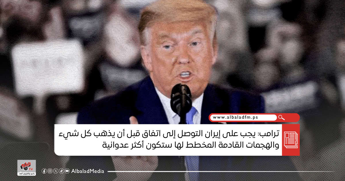 ترامب: يجب على إيران التوصل إلى اتفاق قبل أن يذهب كل شيء والهجمات القادمة المخطط لها ستكون أكثر عدوانية
