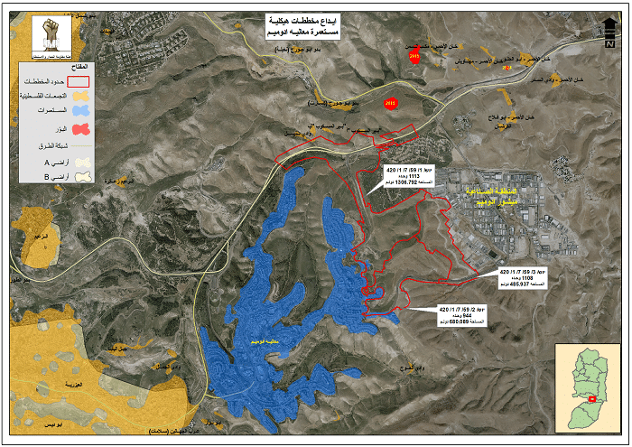 أولاً: المخطط الهيكلي الذي يحمل الرقم יוש/ 1/ 59/ 7/ 1/ 420 لصالح مستوطنة “معاليه أدوميم”، ويهدف لبناء ما مجموعه 1113 وحدة استيطانية جديدة على مساحة تقدر بـ1307 دونمات من أراضي المواطنين.