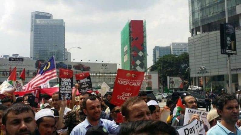 تجمع مئات المتظاهرين في ميدان Columbus Circle بحي منهاتن بولاية نيويورك، بمناسبة “اليوم العالمي للتضامن مع الشعب الفلسطيني”.