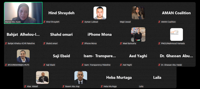 عقد الائتلاف من أجل النزاهة والمساءلة (أمان)، جلسة عبر منصة الزووم، لمناقشة مسودة تقرير بعنوان “الشروط والقيود التي يفرضها الاحتلال الإسرائيلي على الجهات الدولية العاملة في قطاع غزة وأثرها على الفضاء المدني الفلسطيني”. ويستهدف التقرير تحليل القيود الإسرائيلية على العمل الإنساني في أبعادها السياسية والاقتصادية واللوجستية، وتقييم أثرها المباشر على قدرة المؤسسات الدولية في تقديم المساعدات، واستقلالية وفاعلية مؤسسات المجتمع المدني الفلسطيني في الرقابة والمساءلة، وذلك لفهم معمّق للآليات التي يستخدمها الاحتلال للسيطرة على المساعدات الإنسانية وتحديد انعكاساتها على المجتمع المدني.