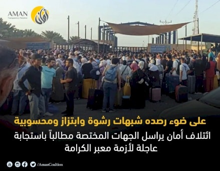 ائتلاف أمان يراسل الجهات المختصة مطالباً باستجابة عاجلة لأزمة معبر الكرامة