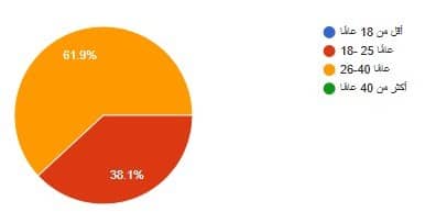 نسبة الذكور الذين قاموا بتعبئة الاستبانة بلغت (83.3%)، والإناث (16.7%)، في حين تراوحت أعمار (61.9%) من المشاركين بين 26 و40 عامًا.
