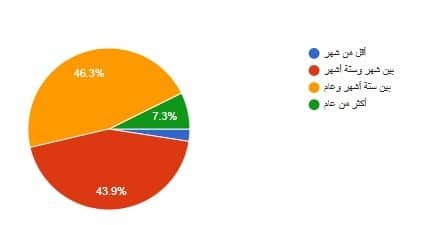وبخصوص مدة الاعتقال، فكانت إجابة (46.3%) منهم، تتحدث عن اعتقالٍ دام بين ستة أشهر وعام، في حين قضت ما نسبته (43.9%) من المبحوثين في الأسر بين شهر وستة أشهر، أما (7.3%) فقالت إنها قضت في الأسر أكثر من عام، و(2.4%) قضت هناك أقل من شهر.