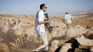مستوطنون يرعون مواشيهم في بلدة مخماس شمال القدس المحتلة